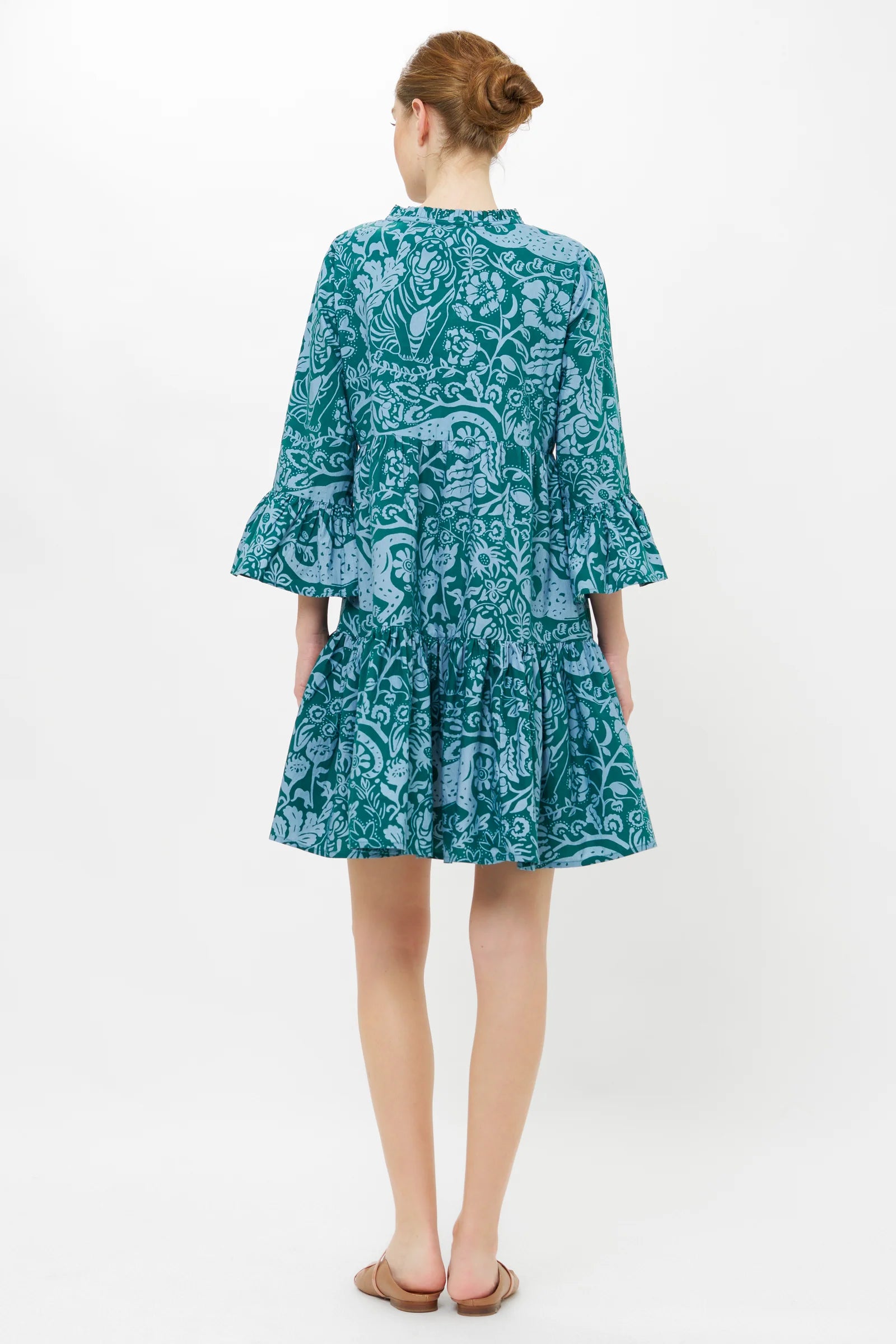 Bell Sleeve Tiered Mini in Singita Green