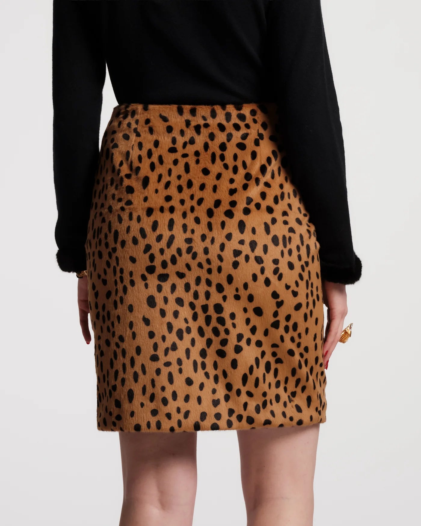 The Blaine Skirt is designed to do the talking. Cut to flatter with a side zip closure and no extra fuss, it lets the spotted faux fur take center stage. Worn on its own, it adds a playful edge to polished basics. Paired with the matching Blaine Jacket, it becomes a set that’s as confident and timeless as the woman who wears it.