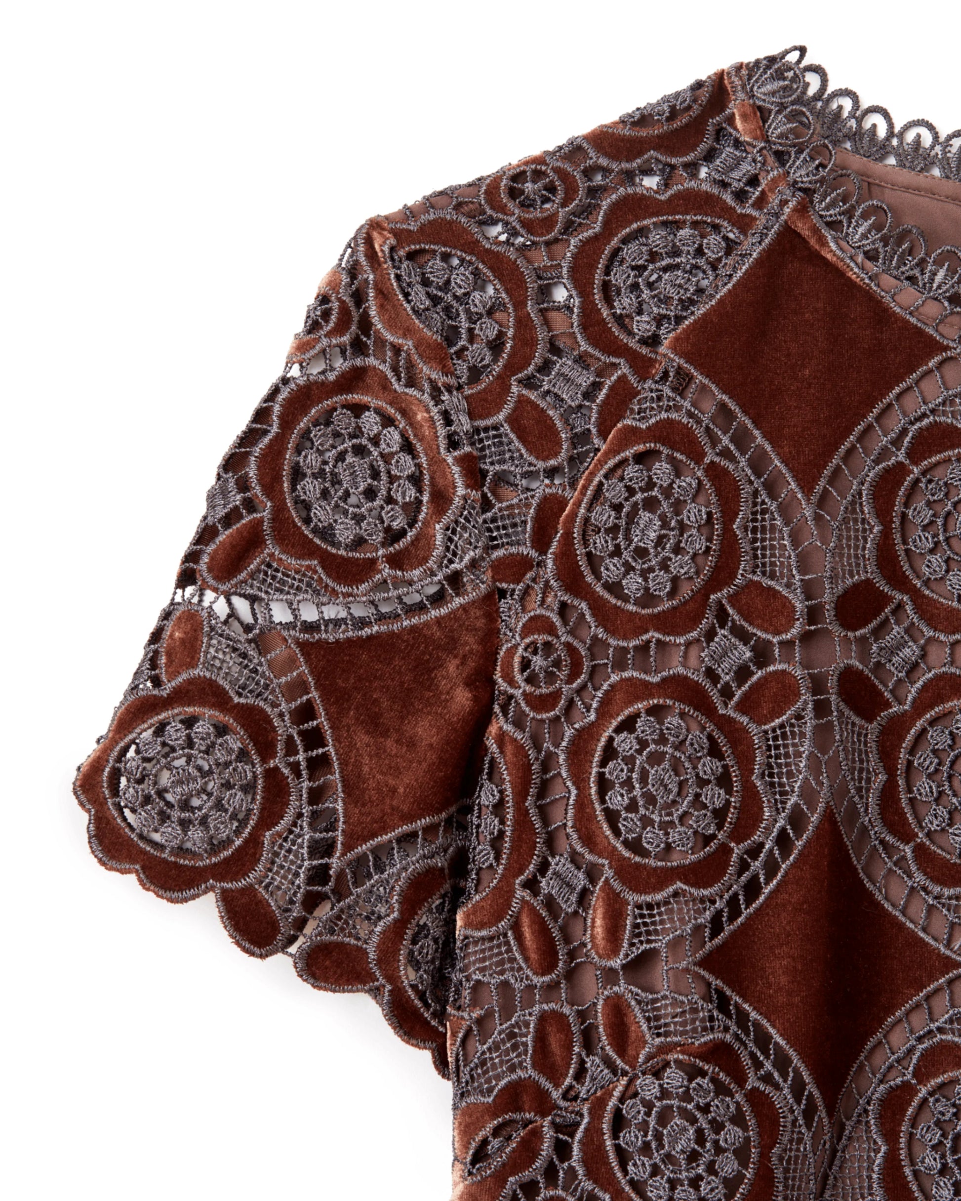 A chic, body-skimming midi-length short sleeve dress made for a variety of this season’s special occasions, from weddings to holiday gatherings. Equal parts romantic and feminine, the soft lux velvet lace makes this style stand out in a crowd.